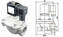 DMF-Z型直角式電磁脈沖閥(又稱直角式電磁閥,直角式脈沖閥,直角式閥),進(jìn)出氣口連接孔為寸制管螺紋結(jié)構(gòu)。