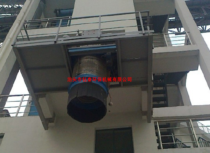 伸縮溜管采用雙層套管結(jié)構(gòu),由溜筒和防塵罩構(gòu)成。溜筒內(nèi)通過物料,防塵罩外套在溜筒上,期間行程吸塵腔。無塵伸縮溜管底部將設(shè)料位傳感器和防塵群罩。料位傳感器將設(shè)在外側(cè)或內(nèi)側(cè),防塵群罩將采用分塊重疊式。在裝車過程中料位傳感器接觸物料后,無塵伸縮溜管