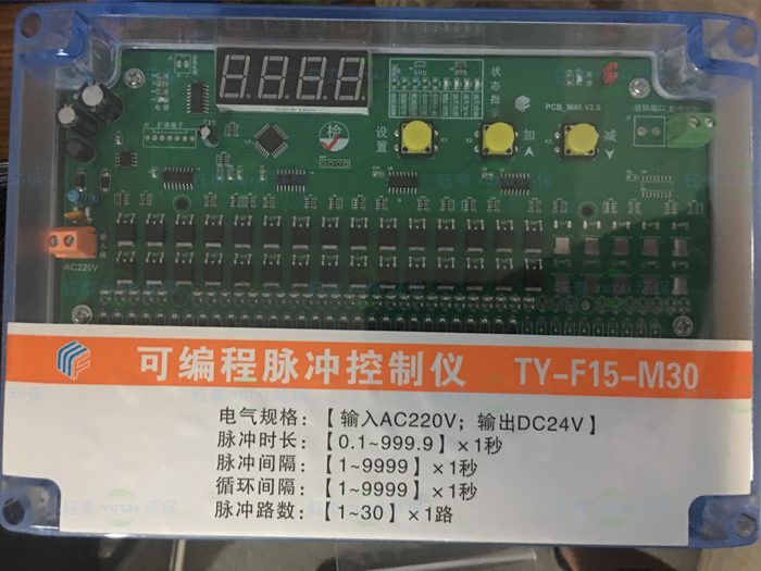 TY離線脈沖控制儀 是袋式除塵清灰系統(tǒng)的主要控制裝置,離線脈沖控制儀的輸出24V信號用于控制電磁脈沖閥對濾袋進行循環(huán)清灰,以_除塵器的處理能力和收塵效率。泊頭市康越環(huán)保有限公司生產(chǎn)各類脈沖控制儀,運用SMT技術研發(fā)各類新型產(chǎn)品,以求提供給廣大終端客戶