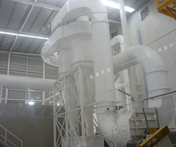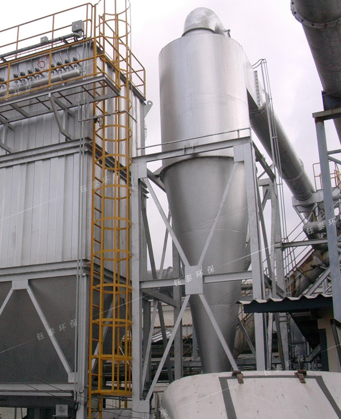 工業(yè)旋風除塵器又稱旋風過濾除塵器,主要用于去除廢氣中密度較大的非纖維性、非粘性顆粒。可捕集粒徑大于5μm的粉塵,除塵效率50%~90%。因此,通常采用旋風除塵器作為廢氣送入主除塵器收集細粉塵之前的初級收集器或預過濾器。由于旋風除塵器殼體內(nèi)部幾乎沒有